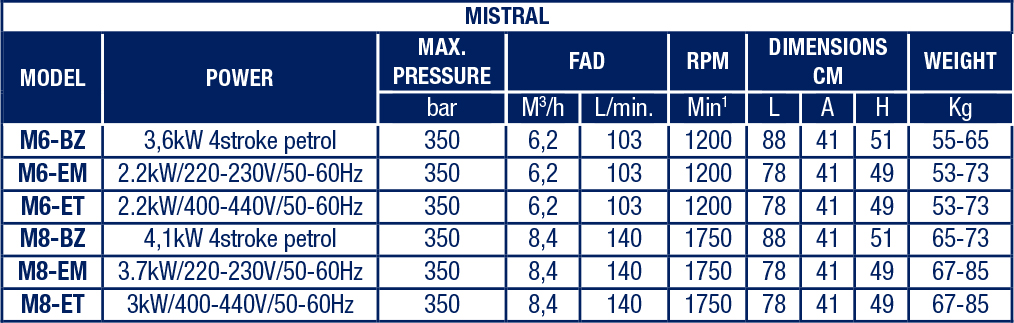 All Mistral M6 models provide the lowest speed rotation of the market, @1200rpm