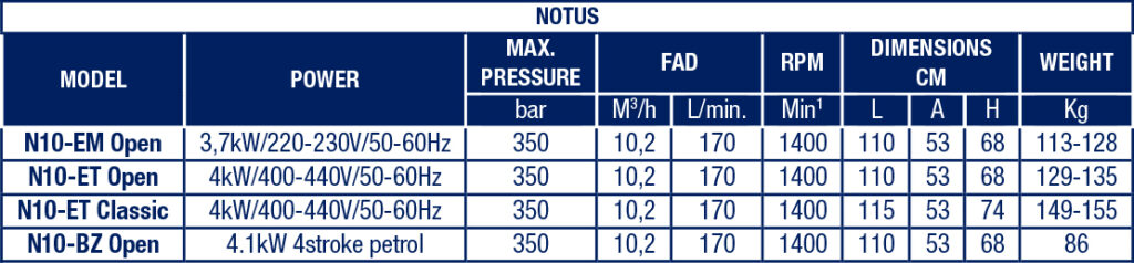 | DESIGN SPECIFICATIONS NOTUS HP SERIES | N10-EM Open | N10-ET Open | N10-ET Classic | N10-ET Open | |||||||||||||||||||||